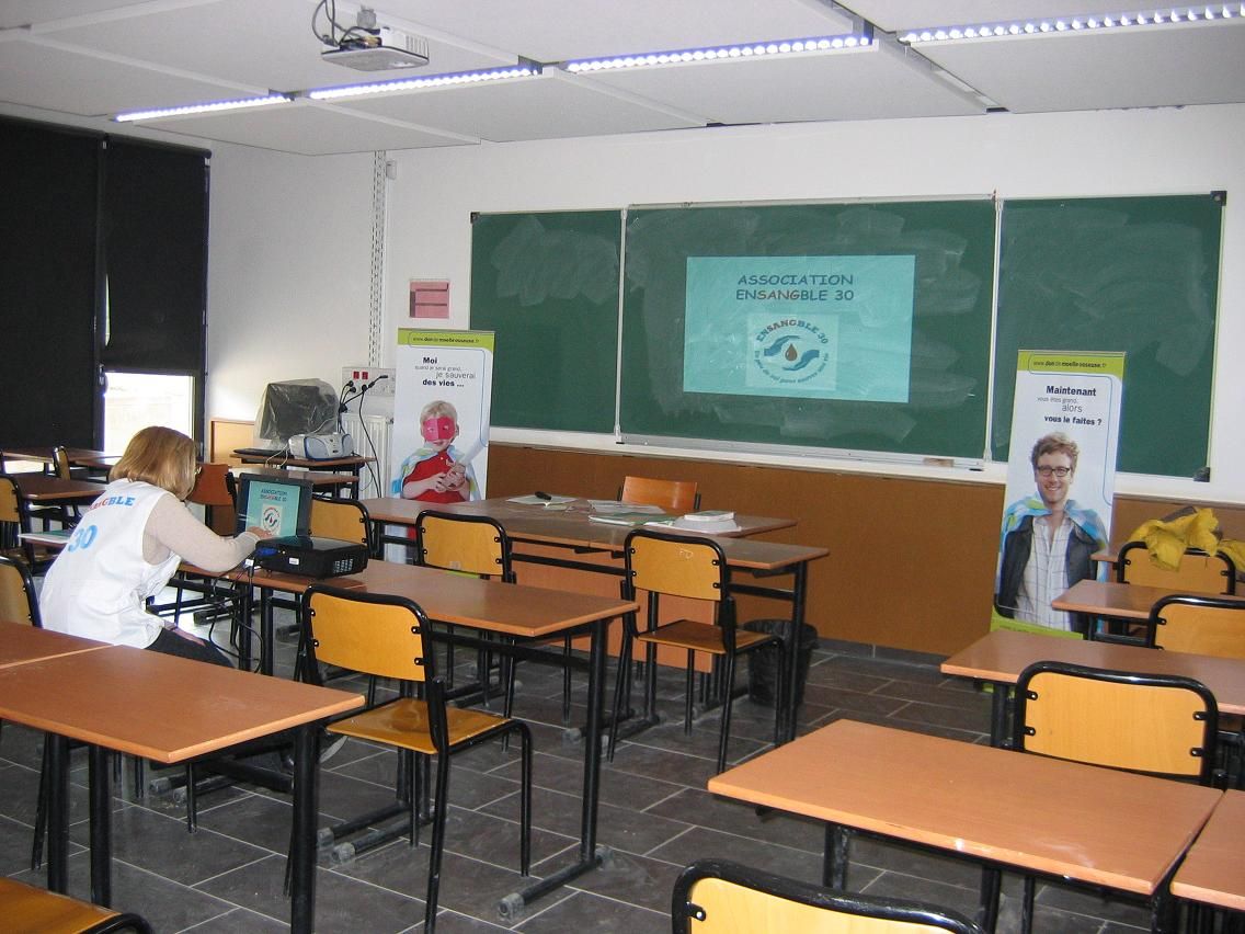 Participation à la journée santé organisée par le collège d’Alzon à Vestric. Sensibilisation des classes de 4e et de 3e au don du sang et au don de moelle osseuse.